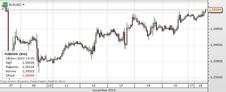 Dal punto di vista tecnico, la scorsa settimana la linea 1.35 si è rivelata una resistenza piuttosto dura, anche se gli scambi sull’Euro/Dollaro tendono ad avvicinarsi progressivamente.