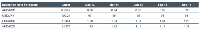 Secondo la Westpack Banking Group, invece, la direzione del cambio Euro/Dollaro nel breve termine (da qui al 13 dicembre) è al rialzo, come mostrato nella tabella delle previsioni annuali sulle major: