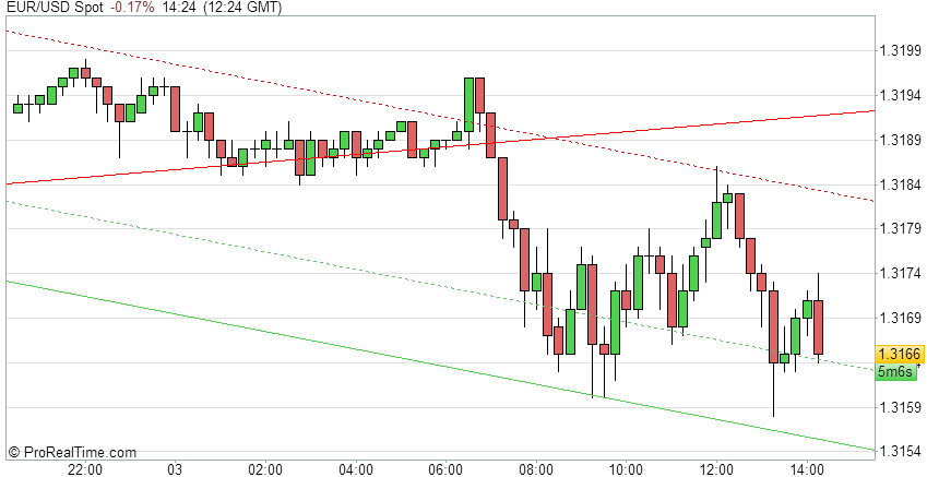 Durante la sessione Asiatica, il cambio Euro/Dollaro ha iniziato a perdere terreno, scendendo fino ad un minimo di 1.3164 prima di una fase di consolidamento in zona 1.3167. Durante la sessione Europea gli scambi sono rimasti pressoché invariati, il cambio ha raggiunto un massimo di 1.3188 ed un minimo a 1.3158.