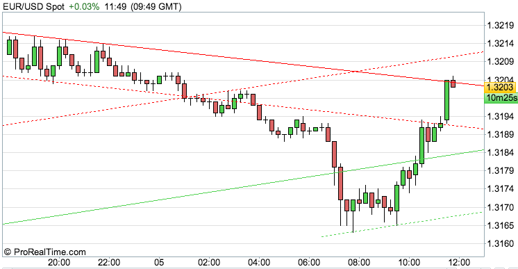 Durante la mattinata di oggi, 5 settembre 2013, il cambio Euro/Dollaro ha recuperato le perdite subite all’alba riportandosi al di sotto della zona 1.32 che nelle prossime ore potrebbe essere soggetta a fasi di test.