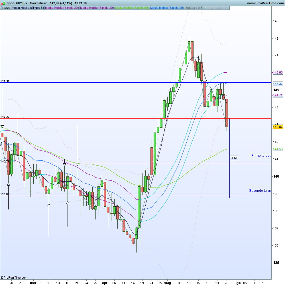 In tal caso avremmo il segnale per entrare a mercato short con un primo target che potrebbe essere posizionato in area 140,78 ed un secondo target in area 138,88.