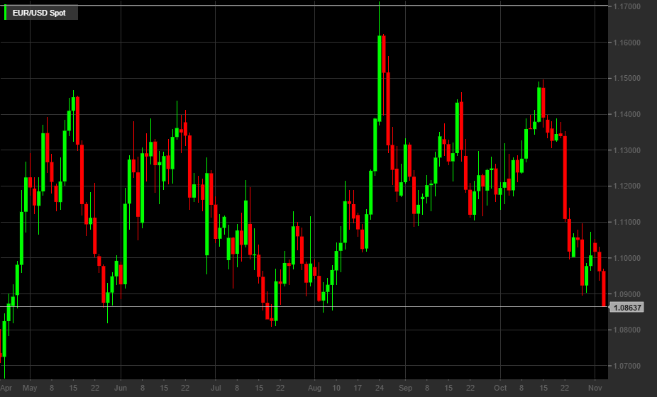 Ci troviamo a livelli di prezzo minimi che non si vedevano da inizio agosto, quando le scure sull’economia asiatica ed il possibile rischio contagio per l’economia USA fecero schizzare in alto il cambio.
