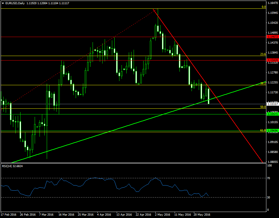 Il mercato sconta tutte queste informazioni spingendo euro-dollaro al ribasso e alla rottura dell’ennesima trendline positiva, come osservabile dal seguente grafico giornaliero: