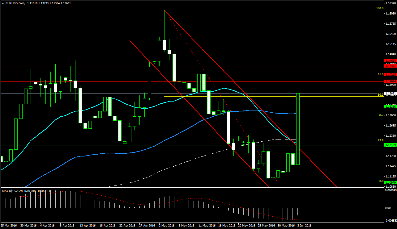 Il canale ribassista inaugurato con l’inizio di maggio è diventato in poche ore un lontano ricordo, l’ultima candela si è infatti allontanata dalle trendline evidenziate in rosso, tornando al di sopra del supporto a 1,135, in coincidenza con il 50.0 di Fibonacci.