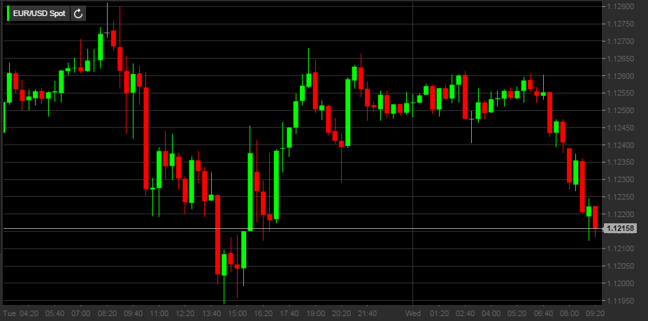 La giornata di ieri è stata caratterizzata da forte volatilità, con il cambio che ha raggiunto il massimo intraday al livello di 1,1281, per poi girare al ribasso fino ad un minimo intraday di 1,1198.