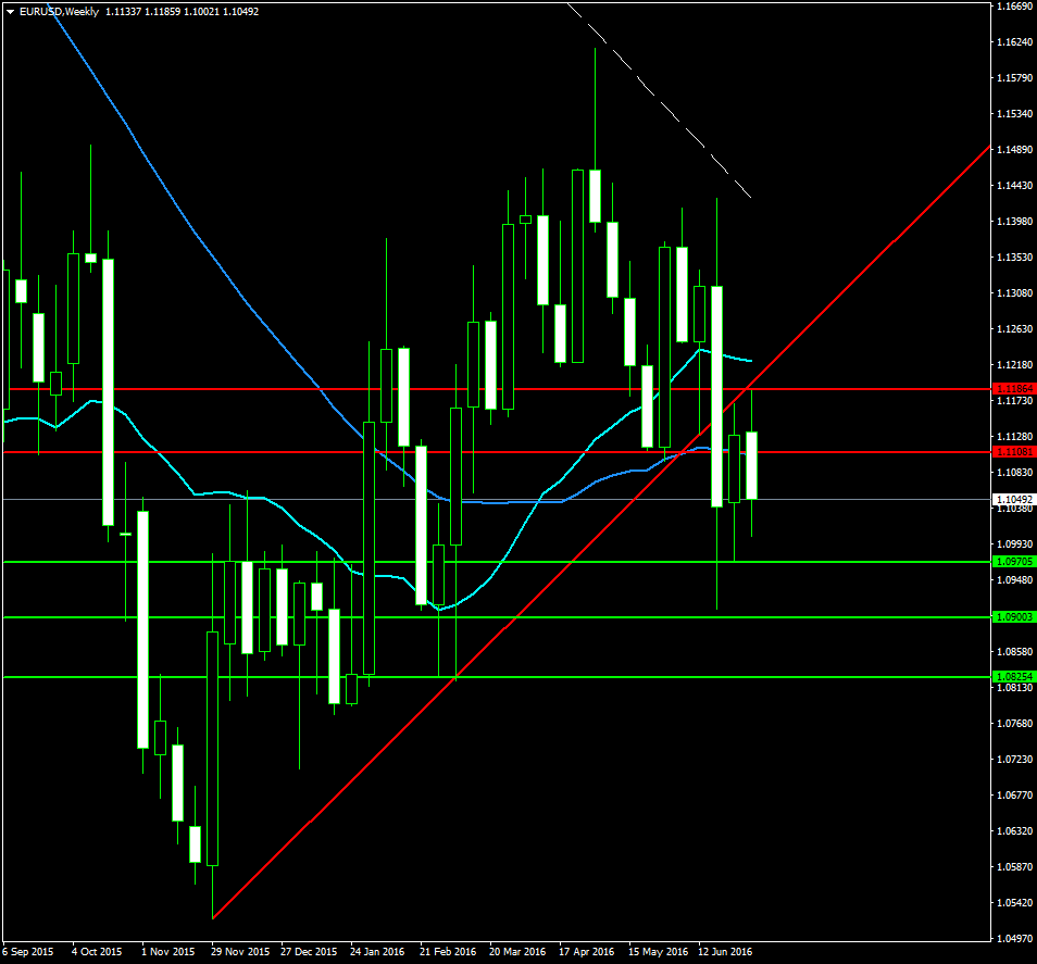 La trendline che prima fungeva da supporto al trend rialzista di medio periodo è stata violata con la Brexit e rappresenta ora un livello di resistenza, che già per due volte ha respinto verso il basso euro-dollaro, giunto a tagliare la media mobile a 20 periodi e a testare il supporto a 1,10.