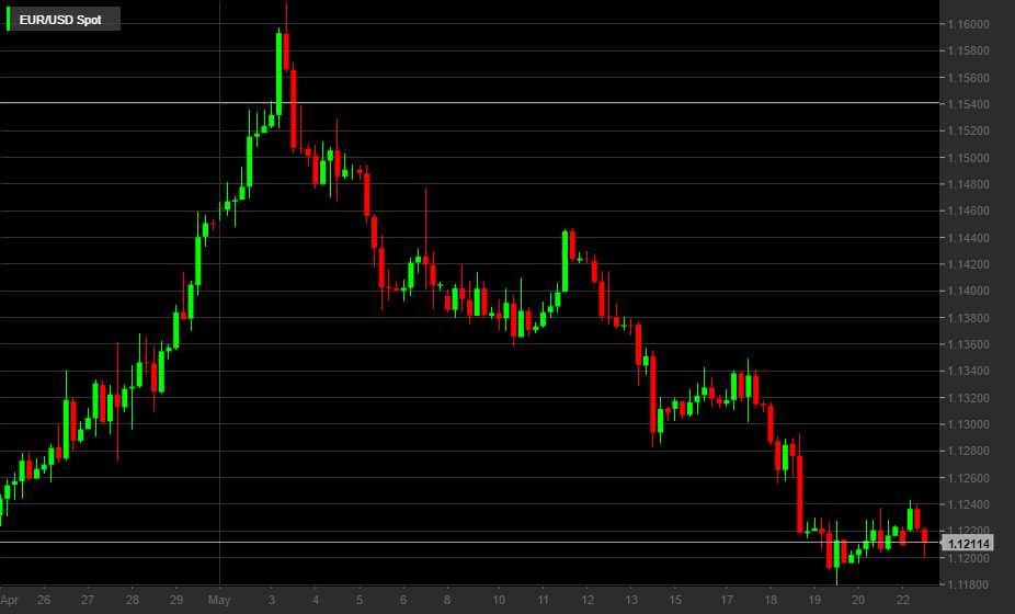 Il cambio euro-dollaro, dopo aver raggiunto temporaneamente i massimi sopra quota 1.16 il 3 maggio scorso, ha subito inaugurato una nuova discesa.