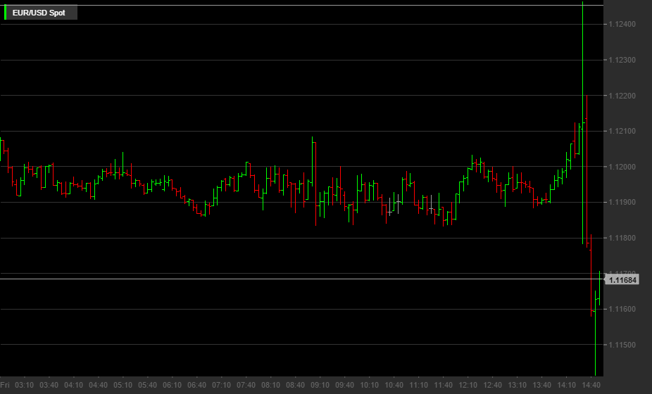 Il cambio euro-dollaro, inizialmente, è schizzato al rialzo toccando nuovi minimi di 3 mesi e mezzo a quota 1.1245, ma subito dopo l’euro-dollaro ha iniziato la discesa cadendo fino a toccare 1.1125, con una perdita giornaliera dello 0.72%. Erano quattro giorni consecutivi che il cambio euro-dollaro chiudeva al rialzo.
