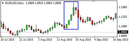 Frena l’economia della Cina e i dati macroeconomici negativi del gigante asiatico hanno portato alla luce i problemi del primo partner commerciale degli Stati Uniti. Per il dollaro arriva una pioggia di vendite e il cambio EUR/USD arriva a guadagnare 700 pip in pochi giorni. Da quel momento si moltiplicheranno le attenzioni sulla Cina e sui mercati emergenti, anche da parte della FED.