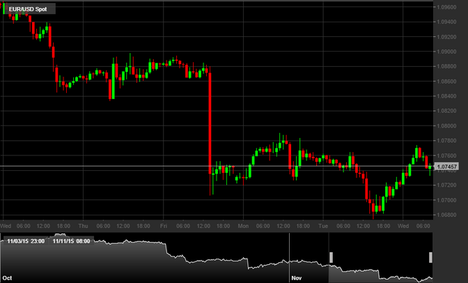 La debolezza dell’euro nei mercati forex di ieri non è dovuta all’avvicinarsi della riunione BCE di dicembre. Oggi potrebbe estenedersi il sentiment ribassista con i discorsi di Draghi e Constancio (Vicepresidente della BCE, ndr).