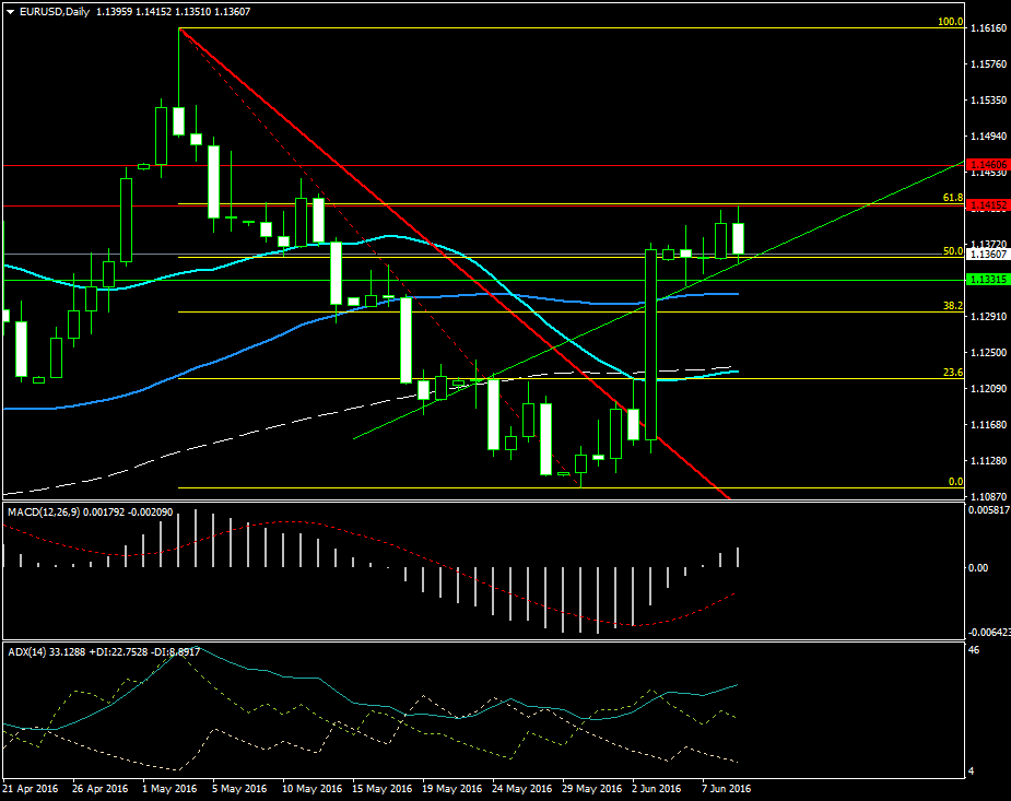 Durante la giornata di ieri è riuscito l’abbattimento di questo livello ma euro-dollaro è stato respinto al ribasso dalla resistenza a 1,1415, coincidente con il livello 61.8 di Fibonacci.