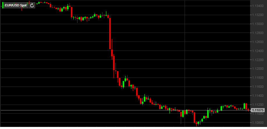 Parole così accomodanti dal punto di vista monetario hanno indebolito fortemente l’euro, che nei confronti del dollaro questa notte è arrivato a toccare un minimo di 1,1072, livelli che non si vedevano da agosto.