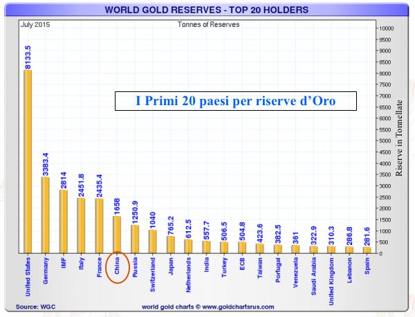 Il 17 luglio del 2015 la Cina, per la prima volta in 6 anni, ha rilasciato un documento che attesta la quantità di riserve d’oro della Banca Popolare cinese (PBOC).