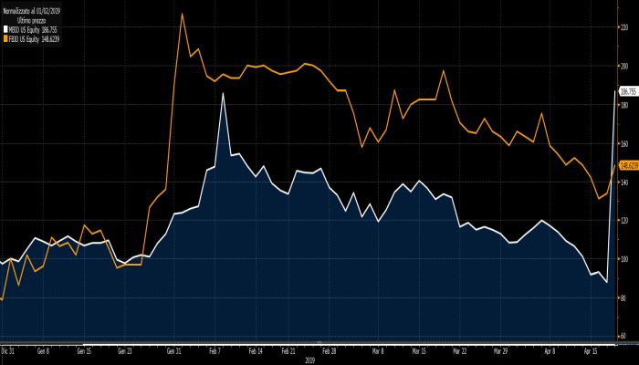 Se si considera quindi la performance tra il prezzo di chiusura di mercoledì e il prezzo di chiusura di ieri, il titolo ha guadagnato un +112,03%, molto di più di quanto abbia guadagnato da inizio anno (96,52%).