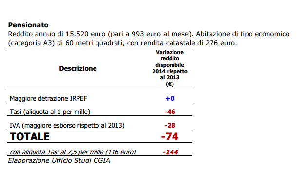 - i pensionati subiranno un aggravio fiscale tra i 74 e i 144 euro;