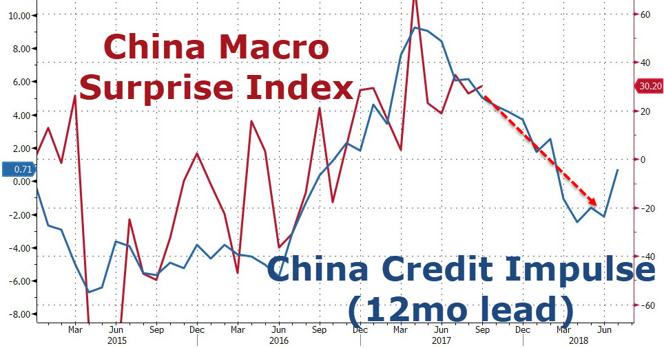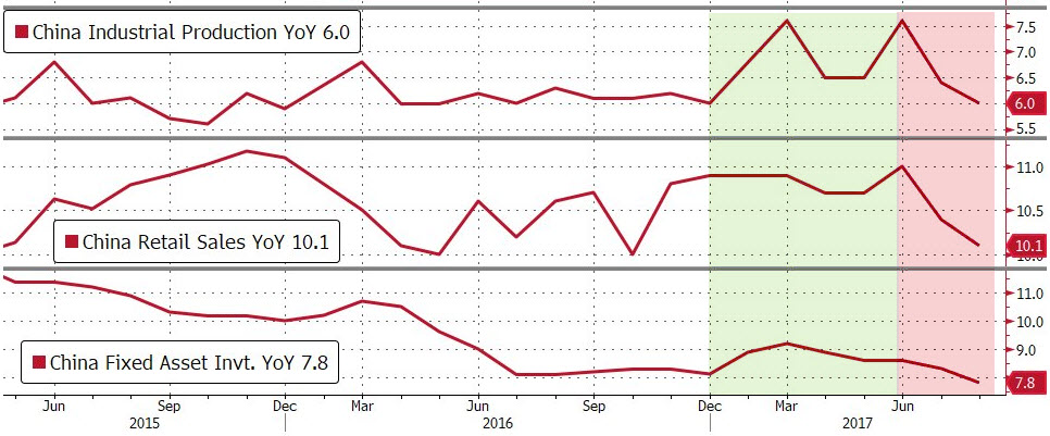 I dati macroeconomici cinesi deludono, annullando la ripresa della prima metà del 2017. Colpa dello stop dell’impulso al credito, che mette nei guai il Dragone.