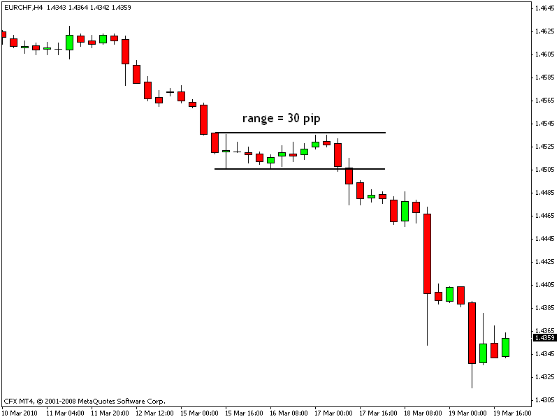 Se osserviamo il grafico a 240 minuti del tasso di cambio Euro/Franco svizzero, i prezzi – dopo una discesa piuttosto robusta – hanno cominciato a congestionare all’interno di un range molto stretto di 30 pip poco sopra un livello di supporto rilevante.
