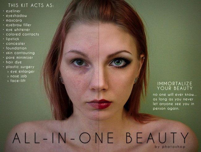 Questi ad utilizzano gli stessi linguaggi delle pubblicità di cosmetici e prodotti di bellezza, suggerendo che noto software di grafica possa rientrare nella stessa categoria.