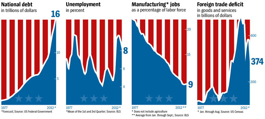 Il ritorno di questi problemi, raggirati durante la campagna elettorale e la rielezione di Obama difficile da digerire per i Repubblicani porta a supporre che l’America non sarà in grado di affrontare e vincere tutte le sfide che tra la fine del 2012 e l’inizio del 2013 si proporranno davanti: