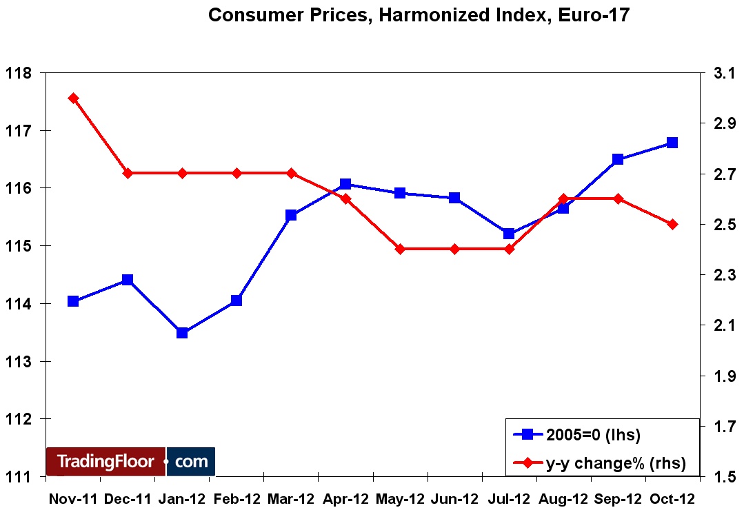 L’indice preliminare dei prezzi armonizzati al consumo (IPCA) si dovrebbe attestare al 2,4%, contro il 2,5% del mese scorso. L’inflazione è attualmente in una zona no-touch, leggermente superiore rispetto all’obiettivo di tasso della Bce il che rende politicamente scomodi e improbabili ulteriori tagli nei tassi d’interesse, ma non sufficientemente alta da poter parlare di tendenza in crescita. Molti commentatori sostengono che l’IPCA stia sopravvalutando l’inflazione a causa dei prezzi relativamente alti di energia e cibo, ma questo è il numero che corrisponde all’obiettivo di politica della Bce. Così anche un piccolo aumento nell’IPCA probabilmente escluderebbe ulteriori tagli ai tassi d’interesse se la crisi dovesse aumentare. Mentre la situazione in Europa è in gran parte guidata dai negoziati di salvataggio e da politica monetaria anticonvenzionale, questo numero è attualmente inutile, fino a quando non accadrà qualcosa e la Bce non rivedrà le sue opzioni politiche. Mentre un IPCA maggiore probabilmente non significherà molto per Draghi nel contesto attuale, potrebbe invece rafforzare la fiera opposizione della Germania a ulteriori misure anticonvenzionali. Anche se il loro voto unico sulle questioni della Bce non ha molto potere, la Germania ha una modesta influenza attraverso le decisioni del Cancelliere Merkel e naturalmente i voti occasionali del Bundestag tedesco. Da notare che saranno rilasciati allo stesso tempo i numeri della disoccupazione in Europa. Dato che sono già noti i più importanti numeri nazionali, non dovrebbero aspettarsi grandi sorprese.