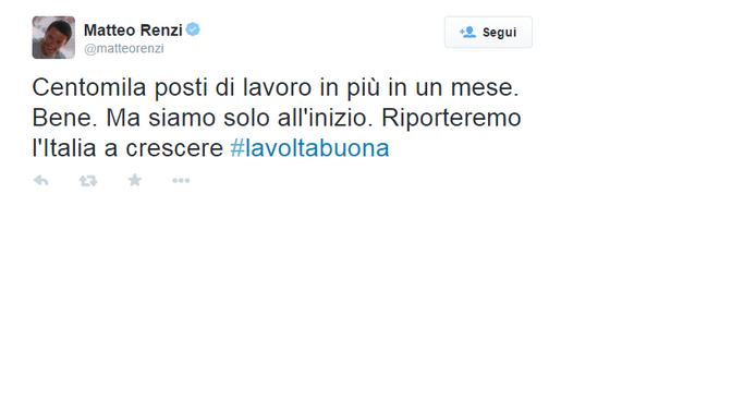 Il commento di Renzi tramite Twitter non si è fatto attendere: