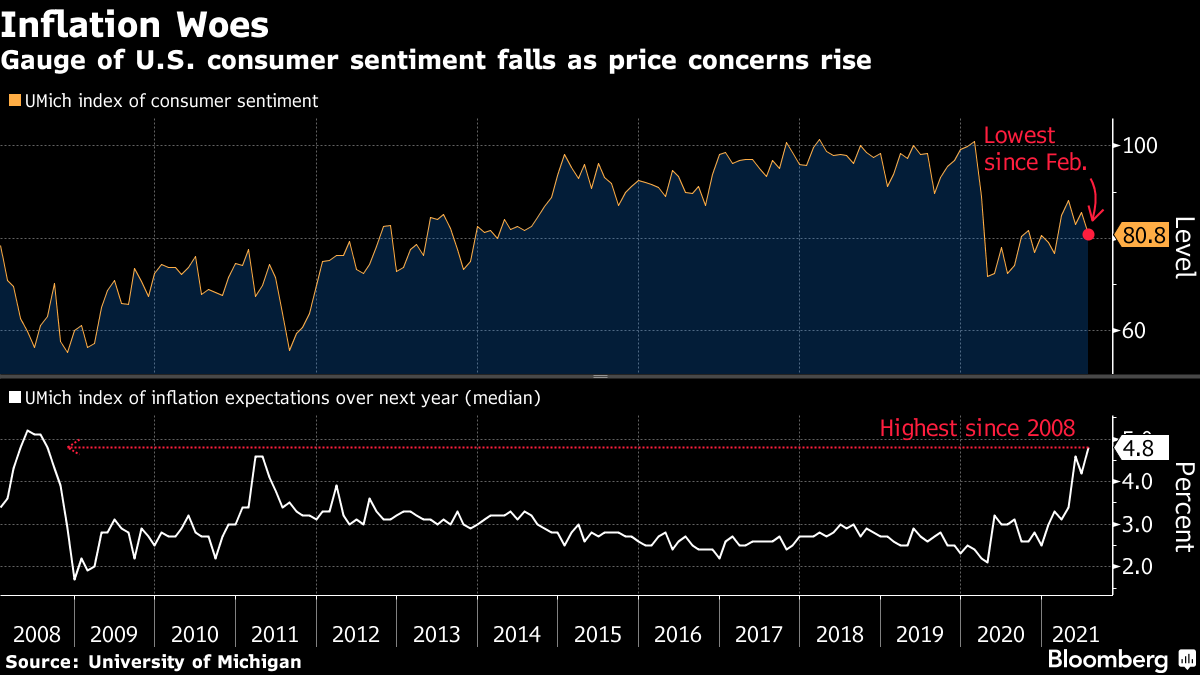 contenuti nell’ultimo rapporto dell’Università del Michigan (UMich) pubblicato ieri. Un catalogo degli orrori. E non per Wall Street, bensì per quella Main Street che dal Qe pandemico doveva emergere come la principale beneficiaria. Le aspettative inflazionistiche a un anno sono al 4,8%, massimo dal 2008. Proprio l’anno di ambientazione di Margin call, proprio l’anno del ko fatale di Lehman Brothers.