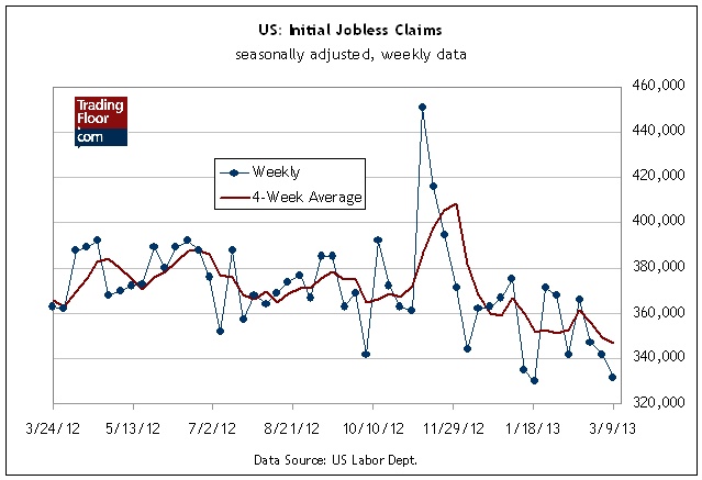 La scorsa settimana, le richieste per ricevere i sussidi di disoccupazione sono scese ad una media stagionale di 332 mila unità, poco al di sopra del minimo di cinque anni registrato il mese di gennaio. Nel frattempo, la media mensile è scesa al di sotto dei livelli degli ultimi cinque anni. In altre parole, il mercato del lavoro USA registra una modesta crescita che continuerà a rinforzarsi progressivamente.