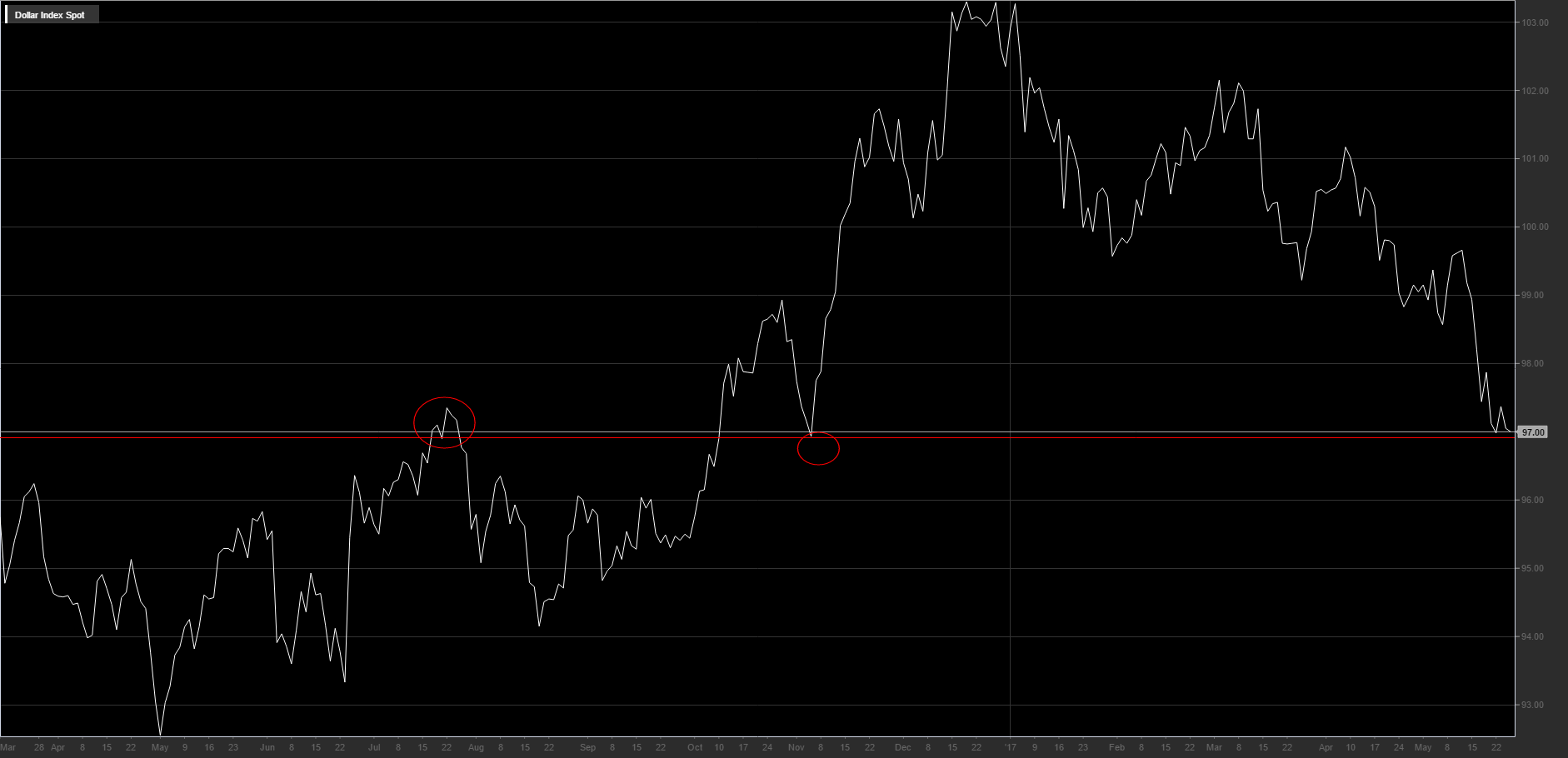 Le recenti crisi politiche che hanno colpito l’amministrazione Trump hanno causato un netto declino dei rendimenti a stelle e strisce e cancellato tutti i guadagni che il dollaro USA era riuscito ad accumulare dopo l’elezione di Trump alla Casa Bianca.