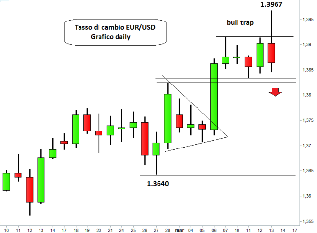 Mario Draghi ha annunciato che la BCE è pronta ad agire per contrastare l’eccessiva forza dell’euro sui mercati valutari. Il cambio EUR/USD sfiora 1,40, poi crolla a 1,3850