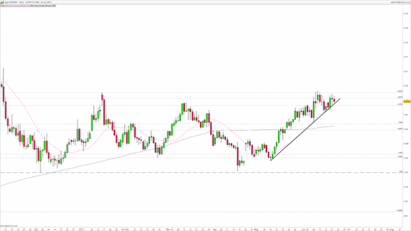 Movimento direzionale piuttosto deciso quello avvenuto sul cambio euro sterlina da metà maggio 2017, che ha portato un rialzo delle quotazioni di alcune “figure”, dato che siamo passati da area 0.84 ad area 0.88.
