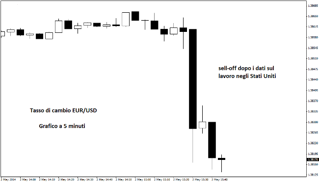 Il tasso di disoccupazione, invece, è sceso al 6,3% dal 6,7% del mese precedente. Il dato è superiore alle attese degli analisti, che avevano stimato una diminuzione della disoccupazione negli Usa ma solo fino al 6,6%. Il dato di aprile è il migliore da settembre 2008. La reazione sul forex è stata immediata e decisamente favorevole al biglietto verde. Il tasso di cambio euro/dollaro si è allontanato dai top intraday di 1,3870, perdendo più di 50 pip in pochi minuti. I prezzi si stanno dirigendo verso quota 1,38. E’ boom, invece, per il cambio dollaro/yen, che ha raggiunto 103 toccando così il valore più alto da oltre tre settimane.
