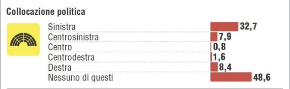 Il bacino elettorale a cui ha attinto il M5S è soprattutto quello della sinistra e nella misura del 35% quello della Lega Nord. Si tratta di un elettorato ideologicamente molto diverso, segno che la voglia di rinnovamento e cambiamento, al di là degli schieramenti, è largamente condivisa. Secondo le statistiche Grillo ha colpito gli elettori che nel 2008 avevano scelto: