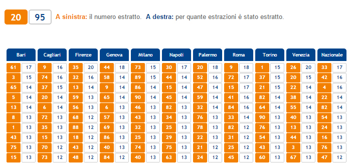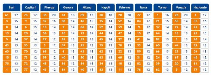 Se invece volete delle informazioni sui numeri considerati fortunati perché escono spesso sulle varie ruote del Lotto, vi lasciamo a questa tabella presente sul sito ufficiale della Lottomatica.