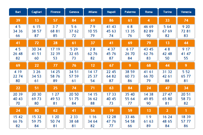 Ricordandovi che non esiste una regola matematica per cui i numeri che non escono da più settimane hanno maggiori possibilità di essere estratti, analizziamo quali sono i “numeri ritardatari” e quelli “fortunati”.