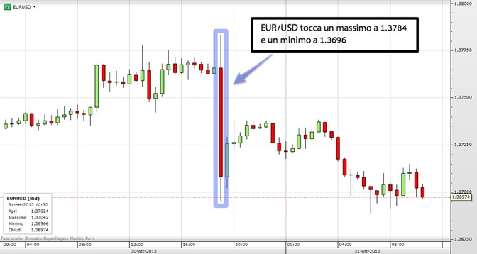Tuttavia, dopo le dichiarazioni di ieri sera, abbiamo assistito ad un repentino rally del Dollaro che si è spinto al rialzo contro l’Euro portando il cambio EUR/USD da un massimo di 1.3784 a 1.3698, zona che il cambio non ha lasciato visto che nelle prime ore di questa mattina gli scambi continuano ad avvenire nella metà del range 1.36.