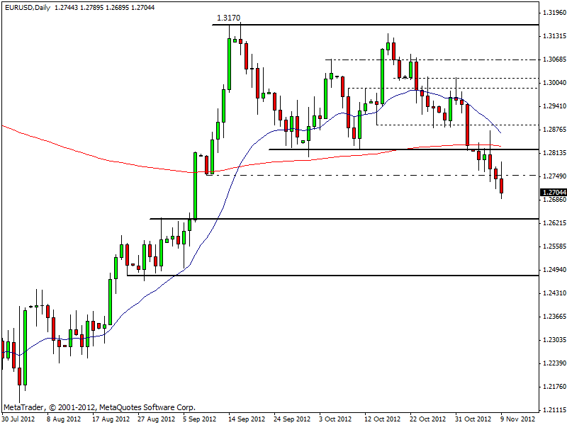 Peggiora il quadro tecnico dell’euro, in particolare contro dollaro americano e yen giapponese. La valuta europea è tra le più vendute in questa fase di mercato, complice il clima di risk off generalizzato e le aspettative di prolungamento della crisi economica ben oltre le attese. Sul Forex il tasso di cambio euro/dollaro ha toccato un nuovo minimo a due mesi a 1,2689, scendendo così sotto quota 1,27 per la prima volta da inizio settembre scorso. pesante calo anche per euro/yen, che ha toccato un nuovo minimo a un mese a 100,42.