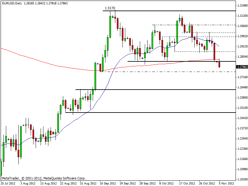 Partenza molto negativa peer l’euro sui mercati valutari in questo inizio ottava. Con l’apertura delle piazze finanziarie europee, il tasso di cambio euro/dollaro ha accelerato al ribasso toccando il minimo più basso da oltre un mese e mezzo a 1,2782. Il supportone daily di area 1,28 è stato perforato con grande decisione. Sull’euro pesano le dichiarazioni della Merkel, che prevede la fine della crisi solo tra 5 anni.