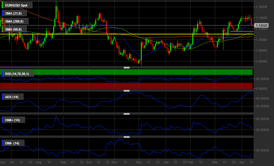 Per arrivare su tali obiettivi, il cambio potrebbe effettuare un pullback sulla media mobile di breve (poco sopra il livello di 1,13$), più che altro per testarne la validità come resistenza. Gli indicatori tecnici segnalano la fase di ribasso con il RSI in decisa discesa sui valori di neutralità e l’ADX che segnala una ripresa di forza del trend negativo.