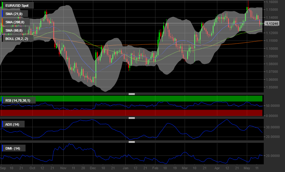 Il cambio Euro-Dollaro sembra essersi stabilizzato poco sopra quota $1,13, arrestando così momentaneamente la corsa al ribasso iniziata il 3 maggio. Questa mattina, in attesa dell’apertura delle Borse europee il cross segna un lieve calo del -0,05%, scambiando così intorno all’area di $1,1315.