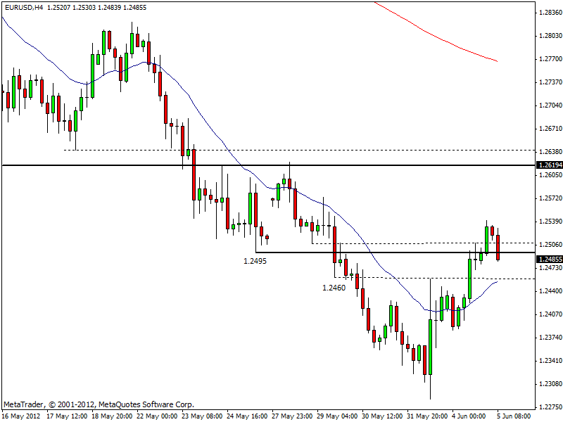 La discesa dovrebbe ora proseguire almeno fino a 1,2460-50, dove è posizionato un supporto (ex resistenza e c’è anche la EMA20 sul 4 ore), che potrebbe riproporre sulla scena i compratori di breve periodo interessati al proseguimento del rimbalzo per altri 150-200 pip. Se dovesse cedere anche questo supporto, allora il trend ribassista dovrebbe ripristinarsi velocemente e il cambio puntare nuovamente ai minimi di periodo di area 1,2290-85.
