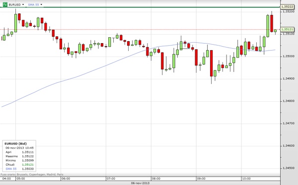 La reazione del cambio Euro/Dollaro è stata piuttosto limitata. Sul cambio la media mobile a 55 giorni continua a funzionare come supporto, mentre la resistenza da molti individuata come possibile punto di partenza per uno strappo rialzista si conferma essere la linea 1.3522.