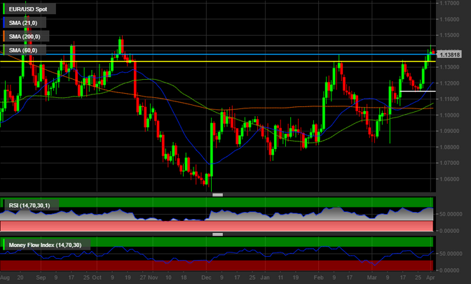L’EurUsd, come confermato dagli esperti di FXCM, è “dollarocentrico” ed alla base del movimento al rialzo c’è l’aspettativa sulle future strette monetarie dell’istituto centrale americano. Stretta che sembra improbabile che arrivi nella riunione di aprile, anche se i vari presidenti locali della Federal Reserve continuano a dare suggerimenti contrastanti, mostrando così indecisione nel board del FOMC.