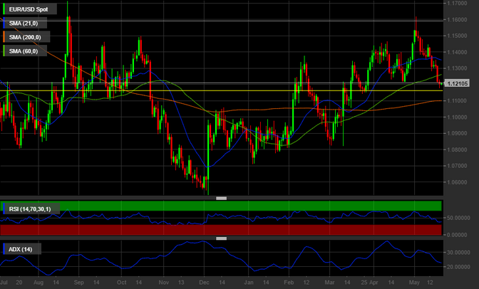 Il cambio Euro-Dollaro nella sessione di ieri ha rotto il valore soglia di $1,12 salvo poi tornarvi a scambiare al di sopra. Questa mattina il cross, in attesa delle Borse europee, scambia in positivo per un +0,07% a quota $1,121, prendendo così fiato nella lunga corsa al ribasso che ormai dura da diverse sedute.