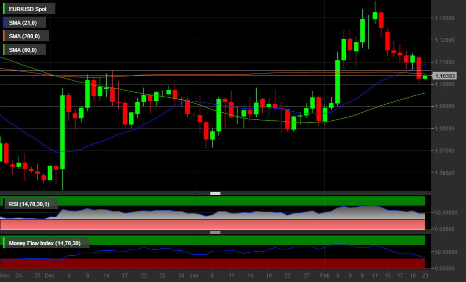 Cambio Euro-Dollaro: i market mover di oggi, martedì 23 febbraio