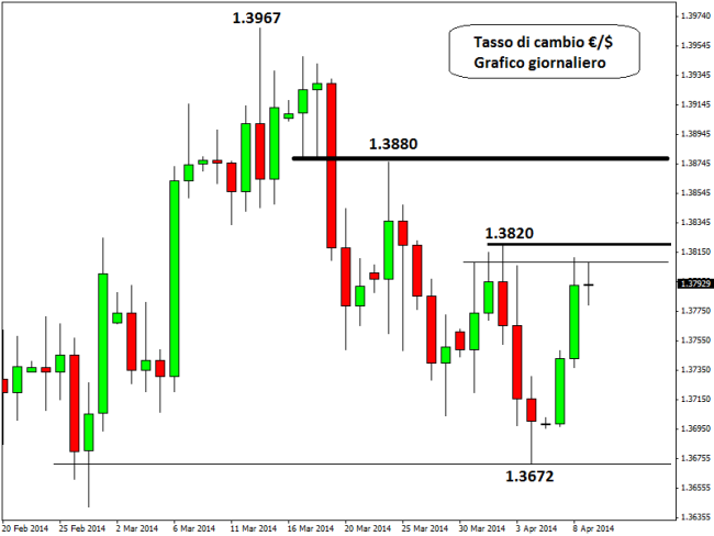 Sul forex il cambio euro/dollaro potrebbe iniziare a perdere terreno solo a partire dai prossimi mesi, complice anche l’atteso miglioramento dell’economia americana che dovrebbe spingere al rialzo i rendimenti sui T-Bond Usa. Attualmente il quadro tecnico del cambio euro/dollaro resta moderatamente positivo, con una quotazione appena inferiore a 1,38. Per ora i compratori stanno incontrando qualche difficoltà a mettersi alle spalle le resistenze intermedie comprese tra 1,38 e 1,3820. Tuttavia, non va escluso un breakout rialzista già nelle prossime ore, soprattutto se il biglietto verde dovesse evidenziare nuovamente una debolezza generalizzata sul forex. Il target del movimento bullish sarebbe compreso tra 1,3880 e 1,3950.