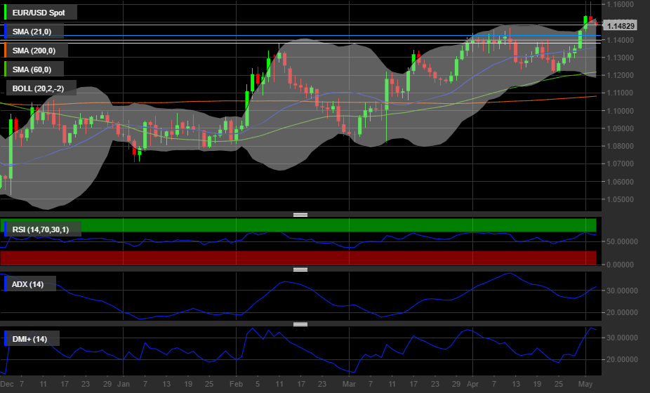 Il cambio Euro-Dollaro nella sessione di ieri ha arrestato la corsa al rialzo, concludendo la seduta in ribasso dopo una fase positiva durata per buona parte della giornata. Il cross anche questa mattina, in attesa delle borse europee, prosegue il ribasso scambiando a quota $1,1483 che corrisponde ad una variazione del -0,12%.