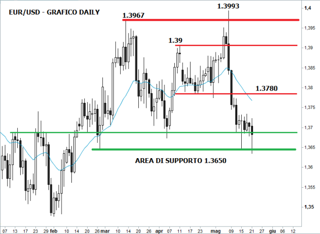 L’euro continua a perdere valore sui mercati valutari. Ieri è sceso sotto 1,3650 dollari, nonostante non sia certo l’intervento della BCE a giugno