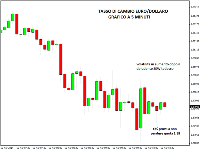 L’indice ZEW tedesco è risultato in calo e sotto le attese. Sul forex l’euro perde quota 1,38 dollari