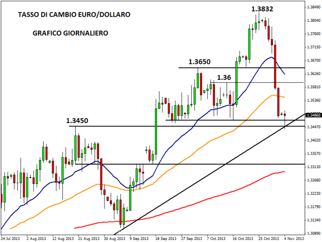 Ancora giù il cambio euro/dollaro, che inizia la nuova ottava sul forex scendendo sotto 1,3450 sui livelli più bassi delle ultime 7 settimane