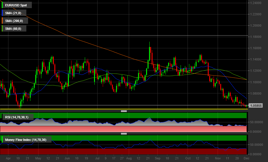 Nella giornata di ieri, l’EurUsd ha toccato il minimo di 1,0558 salvo poi rimbalzare sul massimo di oggi a 1,0596.